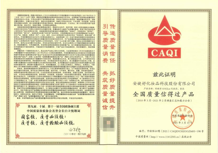 深耕美业30余年,安婕妤始终专注产品品质,凭借专业研发的团队,以消费者的角度出发,持续为消费者提供优质的产品,获得不少消费者的青睐,凭借着卓越的产品品质,斩获多项专利与国家级别认证。始终以高要求与高标准要求自己,连续多年获得CAQI中国质量检验协会质量荣誉表彰。除此之外,安婕妤还积极与双一流高等院校、科研机构开展产学研合作,专注产品品质,增强企业核心竞争力,为消费者传递品牌信任。