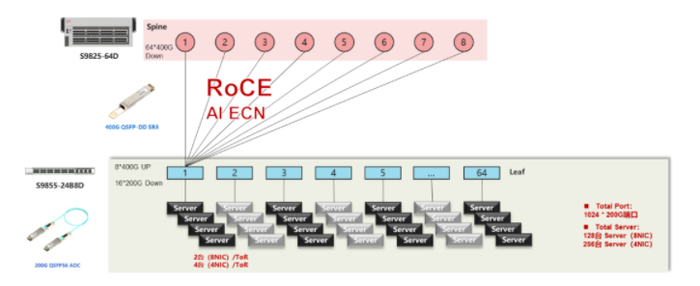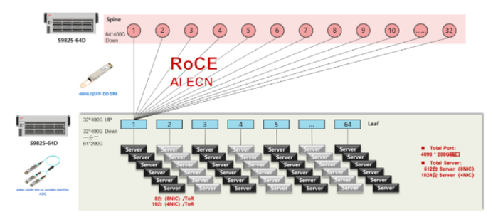 1.2级Clos TH4+TD4组网方案,最大提供1024个200G端口接入能力