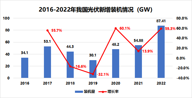 近日,国家能源局公布了2022年光伏新增装机规模:87.41GW,增长率59.27%。行业需求持续旺盛,光伏行业正在进行新一轮大规模产能投放。