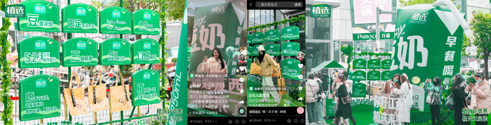 线上定制产品与互动话题持续发力的同时,在线下,伊利植选联合抖音生活服务发起品牌快闪活动,以具象化的场景将伊利植选的产品优势、进店场景、品牌理念等内容融为一体,为用户的早餐场景消费带来全新体验,吸引着本地达人与各年龄层消费者的热情打卡参与。