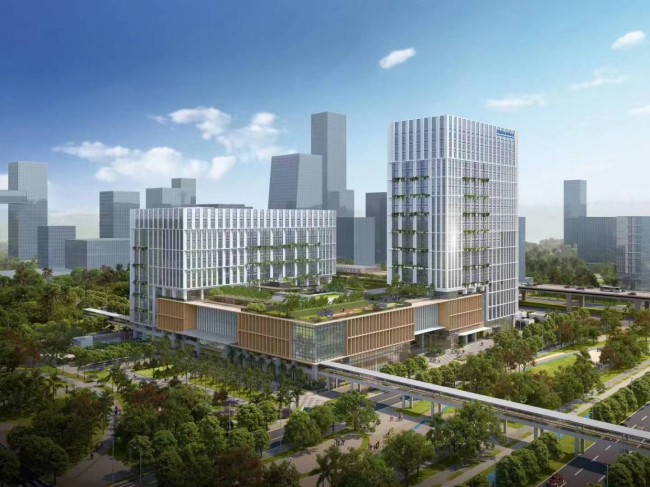 深圳前海泰康国际医院(筹)作为泰康医疗的五大医学中心之一,是由泰康保险集团与深圳市前海建设投资控股集团有限公司共同投资,按三甲综合医院标准建设,定位立足深圳、辐射大湾区、面向世界的国际化高水平医教研一体化医学中心。医院项目位于粤港澳大湾区的核心枢纽——深圳前海前湾片区,由中国建筑第三工程局承建,投资金额近50亿元,总建筑面积21.9万平方米,目前规划床位1160张,预计2024年正式启航运营。