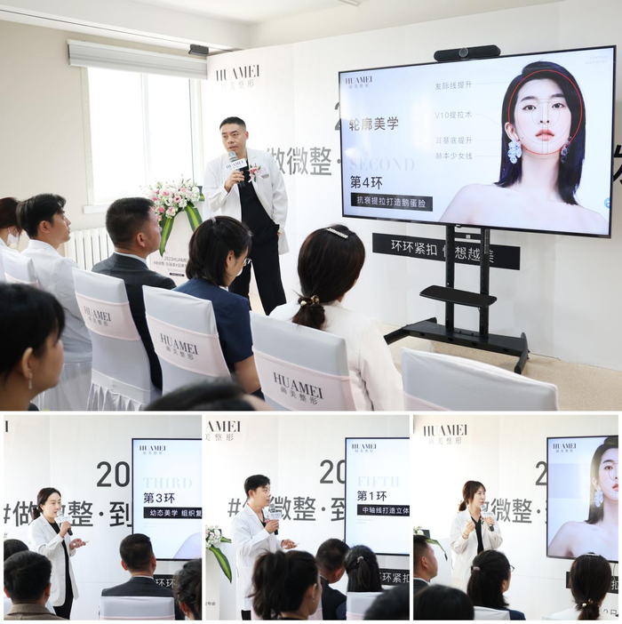 发布会上,北京画美医疗美容医院刘文先、张潇潇、赵映贤、王慧文医生分别为大家带来了Idol精灵耳、天仙高颅顶、果冻童颜脸、撒娇星星眼等的微整新品分享,阐述了依据高定五环美学的基础理念而精研的新品特点与优势,并详细讲解了该新品与其他技术的区别:通过五环美学理念,实施治疗做到面部精细分层注射,可持续改善皱纹和皮肤质地,长期促进面部皮肤年轻化改善,达到面部年轻化的作用,打造精致、自然、持久面庞,更为求美者提供专业的、科学的、个性化的美学设计方案,让与会嘉宾对新技术、新理念有了更深层次的认识。