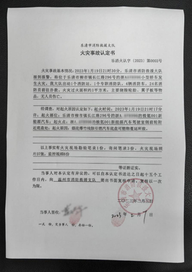 事情是这样的:2023年1月19日晚,温州乐清发生一起极氪001着火事故,事发车辆着火时车上无人员,火情未造成任何人员伤亡。