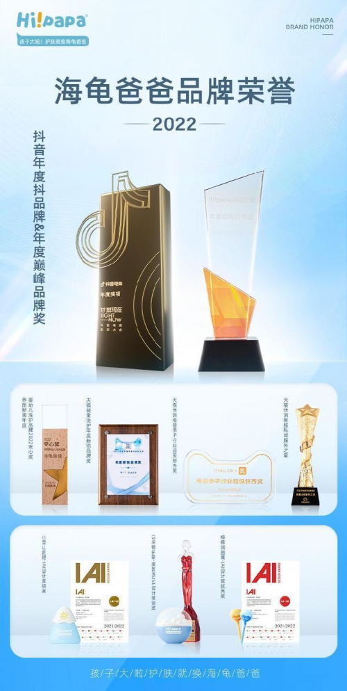 此前,海龟爸爸更以品牌实力获得了2022年度抖音母婴第一抖品牌和天猫婴童洗护年度新锐品牌,稳坐细分赛道第一。