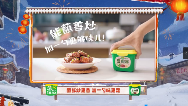 在此基础上,葱伴侣6月香豆瓣酱借势《老铁我们来了》,全面塑造老铁都爱吃的美味万能酱形象,深入厨房餐桌,蘸、炒、炸、焖、炖.....全能在线,人称新时代“烹饪大师(做饭小白)”的小帮手!随着《老铁我们来了》的热播,葱伴侣6月香豆瓣酱的这一形象在年轻群体中更为深入人心。尤其是成为官方合作伙伴的葱伴侣6月香豆瓣酱,不仅是一款经典产品,更让人对其作用有更为深度的认知。年轻人会更深入地了解葱伴侣6月香豆瓣酱“90天足期酿造,0%添加防腐剂,足酿更健康”的特色,也能实现“我不会做菜,但我有招牌菜”的小目标。