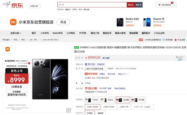 小米MIX Fold2搭载骁龙8+旗舰处理器,性能优异,内置4500mAh大电池,支持67W有线快充,电量无忧。小米MIX Fold2内外屏均支持120Hz高刷、1000nit全屏亮度、前后双光感、杜比视界,清晰且舒适;搭载6.56英寸外屏,使用康宁大猩猩Victus,更坚固;搭载8.02英寸内屏,支持2K+分辨率、LTPO 2.0、Pol-less,清晰且省电。小米MIX Fold2带来专业光学镜头,支持两种风味,搭载小米影像大脑,夜拍、抓拍等拍摄实力更高。小米MIX Fold2京东价8999元起,可享24期免息、以旧换新至高补贴1100元。