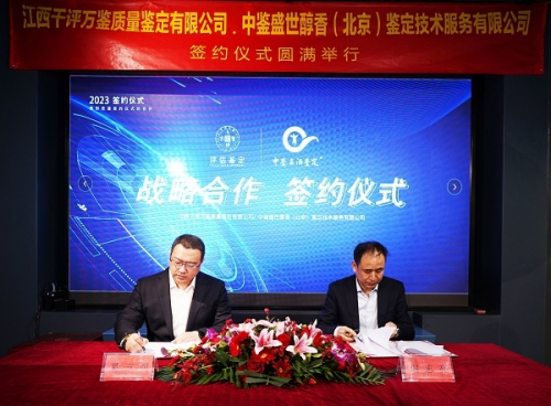 通过此次签约,我们坚信,江西千评万鉴质量鉴定有限公司与中鉴盛世醇香(北京)鉴定技术服务有限公司合作必将为行业带来新的活力、新的理念、新的成果,在互惠中实现互利,在发展中实现双赢。