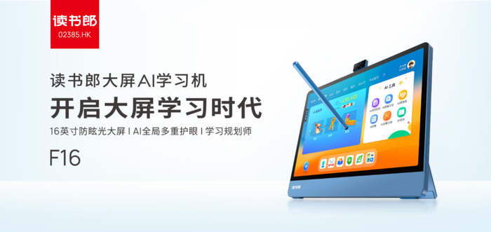 用读书郎大屏AI学习机F16Pro!16英寸2.5K防眩光护眼屏,让孩子学起来更舒适。全新升级内置8000mAh电池容量,实现一机兼备充插两用,使用更方便。帮助实现孩子学习状态满满不断电、即时学习数据有效保存,居家学习更便利。