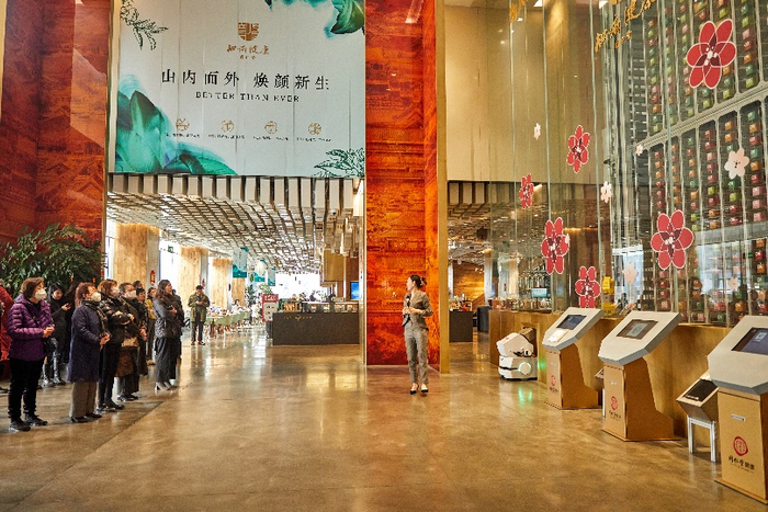 上午11时,品鉴会会员陆续到场,在签到处完成签到后,讲解员带领大家参观了同仁堂知嘛健康零号店。零号店拥有一台可容纳9000个商品的“24H不打烊”无人售药机,及可容纳1000多种饮片的中药调剂台,通过现场讲解员的精彩解说,嘉宾们不仅感受到了传统中医国粹的独特魅力,也对百年老字号的传承与创新精神油然起敬。