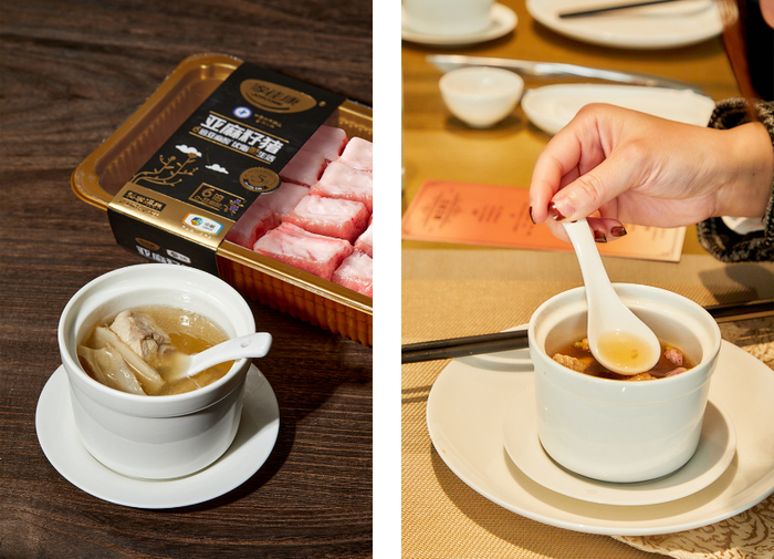 根据会员个人体质量身定制的一道道特色滋补药膳,得到会员们的连连称赞。这些滋补汤品精选家佳康亚麻籽猪肋排粒,搭配同仁堂健康西洋参、石斛、麦冬、当归、陈皮等药食同源的食材清炖而成。“亚麻籽猪肉”是在喂养饲料中科学添加了亚麻籽饲养出来的猪肉,其α-亚麻酸含量是家佳康同类普通产品的6倍以上,饲喂技术获得国家发明专利。α-亚麻酸能代谢分解出多种风味成分,具有独特的谷物清新,使得排骨鲜嫩,汤清味美,非常适宜春季滋养。