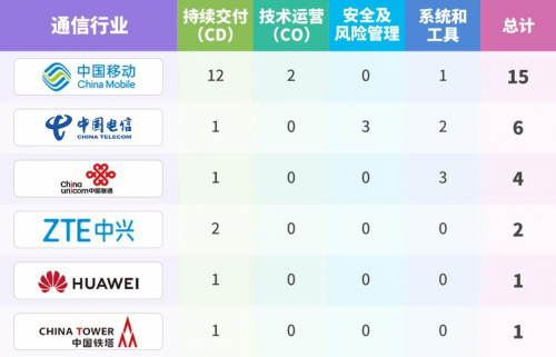 截至目前,通信行业参与 DevOps 能力成熟度模型评估的企业及其评估数量如下: