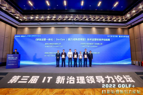 2023年1月6日在“2022 GOLF+IT新治理领导力论坛”主论坛上,由中国通信标准化协会副理事长兼秘书长代晓慧女士和中国信息通信研究院云计算与大数据研究所所长何宝宏先生为企业授牌: