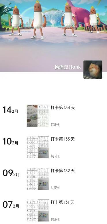 一个月之后,Hank如愿得到了他的礼物,两个月,三个月,一百二十天......直到今天已经快一百四十天,Hank还在坚持着他的复习打卡,一天都没有间断,有时候完成当日打卡已经是深夜。