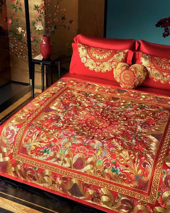 据悉,该寝品起源于郭培高定“云肩翘摆”嫁衣灵感。郭培设计该款嫁衣的初衷是让民族最精粹的文化与自己最美丽的设计相融合,在每一位新娘一生中最重要的时刻,感受到民族文化之美与生命传承的喜悦,并让这种美丽与喜悦代代相传。而“幸福花”寝品正是寄托了这种传承的理念,以物为媒传承幸福永恒。它是家族的传承,也是幸福的传承。