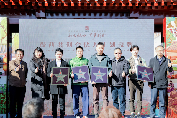 依据北京城市总体规划、核心区控规、北京中轴线遗产保护等要求,按照“共建、共享、共促、共赢”的原则,西城区邀请鼓楼西大街的街区居民、商户、社会机构组织及商务企业等携手共创,聚焦这条历史悠久、商业繁华、文化消费聚集的文化街区,发起“鼓西共创合伙人计划”。活动最后,为鼓西33、伊峰餐馆、什刹海文化探索馆、鼓楼西剧场、岚川樱渡和牛烧肉、钟餐厅、惟音艺术少儿合唱团等商户和居民代表进行授牌。