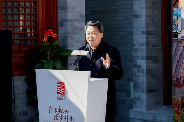 启动仪式上,北京市文物局党组书记、局长陈名杰发表了致辞。他表示西城区在中轴线保护方面发挥了重要作用,不断让文化遗产走进百姓生活。鼓楼西大街作为中轴线核心区北段的历史文化街区,按照新时代文物保护方针,延续发扬北京中轴线“前朝后市”的景象。他希望未来,西城区能够更加重视鼓西街区历史文化内涵的挖掘、突出鼓西街区的生活气息,突出用户体验,让文化遗产走进人民生活,实现为人民服务。
