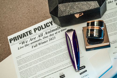 2023年2月12日,PRIVATE POLICY品牌亮相纽约时装周开启2023季秋冬大秀,基于对可持续时尚领域的探索,设计师Haoran Li(李浩冉)和Siying Qu(瞿思颖)把视角汇聚在“我们都是动物”这一主题。GEMO金茉品牌倾情赞助此次纽约时装周PRIVATE POLICY2023秋冬大秀,在秀场后台为超模们带来一场自由律动的年轻盛宴。