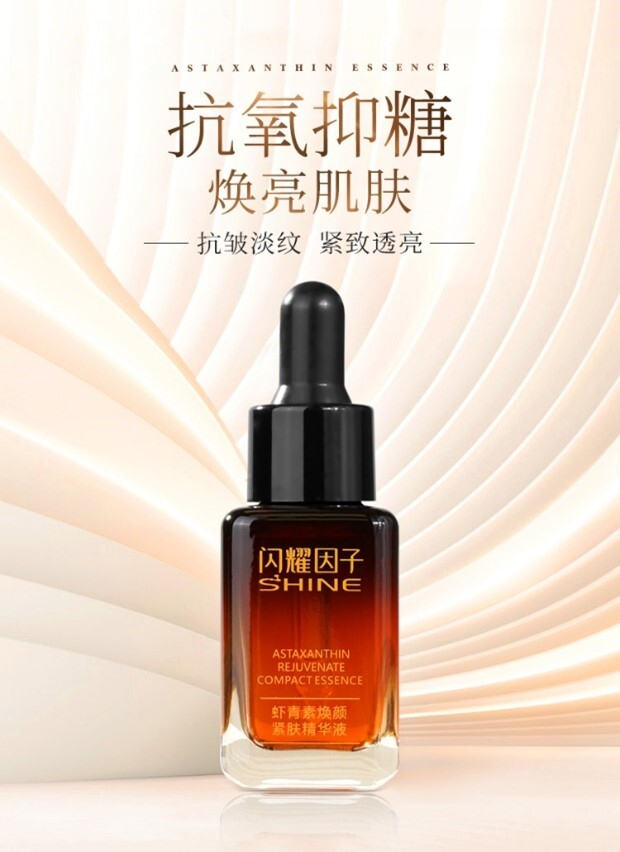 据了解,目前抗氧化比较优秀的成分有维C和虾青素,其中虾青素的抗氧化能力是维生素C的6000倍,维生素E的1000倍,因此受到很多护肤品牌的青睐,尤其是雨生红球藻中提取的虾青素相比于化学合成和红发夫酵母虾青素更安全卫生、含量高,也是众多大牌护肤品的“明星成分”,深受“成分党”的喜爱和推崇。闪耀因子的虾青素焕颜紧肤精华液便是采用日本进口的纯左旋虾青素。