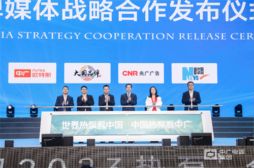 会上,中广电器集团代表与CCTV《大国品牌》、中央人民广播电视总台央广广告以及新华网代表正式签订了品牌媒体合作协议,通过携手媒体平台,多措并举构建海内外高密度、立体化的品牌传播矩阵,持续抢占行业品牌宣发制高点,把中广品牌传播推向新的高度与广度。