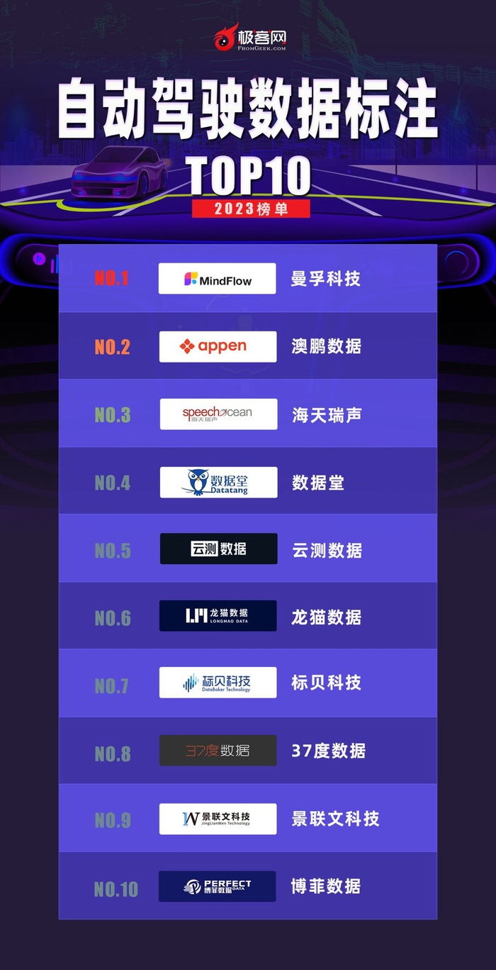 极客榜单是由极客网和极客智库根据市场数据、用户口碑、经营财报等公开资料,基于大数据统计及相关领域专家、分析师意见综合评测而出,是业内最具公信力与含金量的榜单之一。其中,《自动驾驶数据标注企业排名》榜单旨在评选出10家最具创新力和成长力的自动驾驶数据标注企业,树立行业典范。