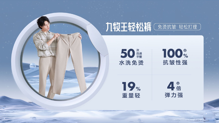 针对男裤质感与轻薄难以兼具,布料易皱易变形,打理费时费力的痛点,九牧王研发打造出新的高性价比单品——轻松裤。获得黄圣依、罗永浩和众多时尚达人纷纷推荐,首发即热销的这款男裤,究竟有何神奇之处呢?