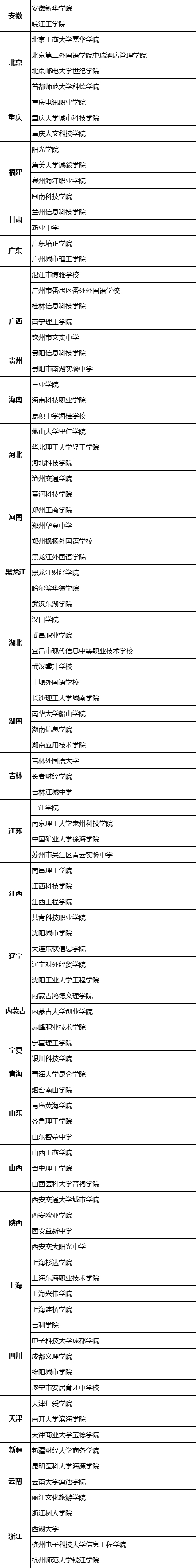 (排名不分先后,省份音序排列)
