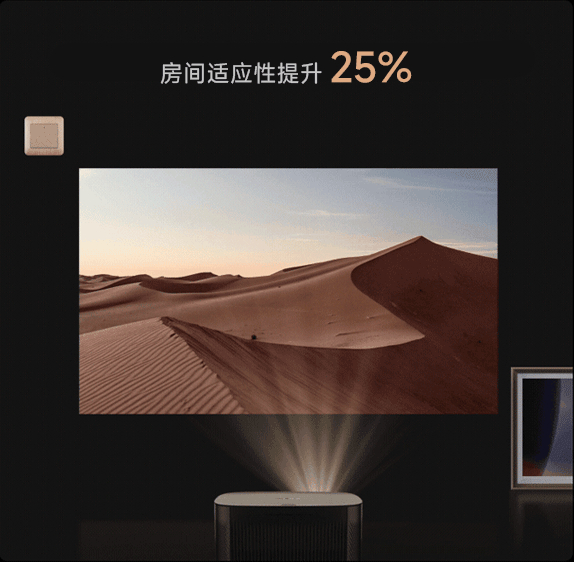 MAVII鹰眼3.0 Pro不仅能感知障碍物和幕布,也能感受复杂的环境光线,结合光学变焦技术极米H6 4K版带来了Turbo Light一键提亮功能,最高能使亮度提升39% 。白天观影时极米H6 4K版感受到光线变强,会在不损失画质的情况下通过缩小画面尺寸让画面亮度变得更高,因此白天也能带来最佳的观影效果 ,夜晚观影时它又会自动放大投影的画面,降低投影亮度,因此在夜晚观影时可以更沉浸,同时也能避免因为画面过亮带来的用眼疲劳 。