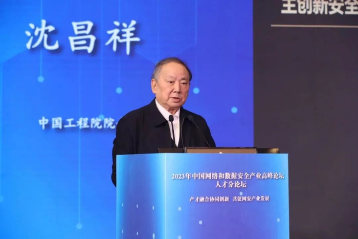 论坛院士报告环节邀请了中国工程院院士沈昌祥作“发展安全可信产业生态和人才队伍 夯实网络强国底座”的主题报告。沈昌祥院士立足推进国家安全体系和能力现代化,深入分析了我国网络强国建设基础、网络空间安全学科建设及人才培养等重大问题,并提出要持续搭建基础研究型人才、工程应用型人才、推广实用型人才的金字塔人才体系,加快网络安全全民普及教育工作。