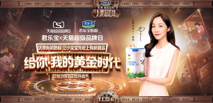 在2月20日君乐宝X天猫超级品牌日当晚,《无限超越班》嘉宾、君乐宝奶粉品牌代言人韩雪空降君乐宝旗舰店直播间,与君乐宝乳业集团副总裁、奶粉事业部总经理刘森淼开启了一场复古的创意直播,解锁宝宝成长的黄金时代。直播期间,面额1000元口令红包、整点秒杀小听粉、直播间专享购物金、宠粉红包、直播间满额抽奖等福利派送点燃宝爸宝妈购物热情,直播间首发并赠送的限量版签名「给你·我的黄金时代」天猫超级品牌日独家优萃定制礼盒更是将这一场直播推向高潮。