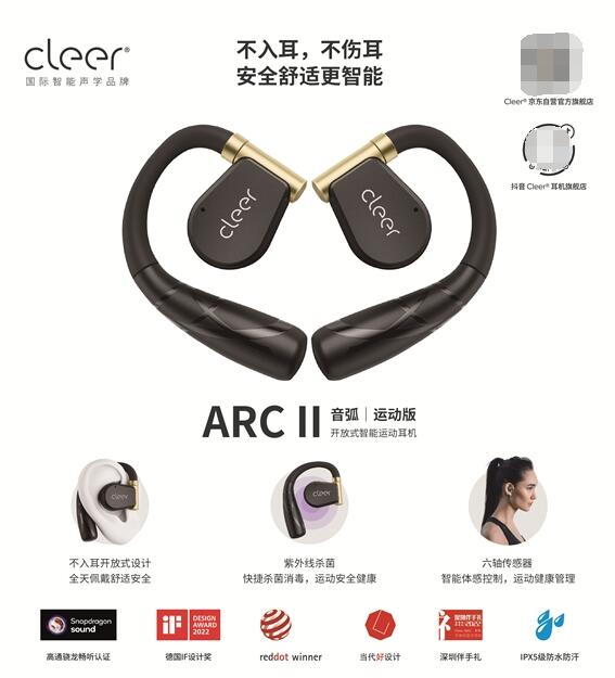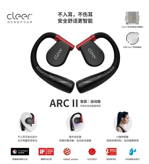 与“蓝牙耳机”“主动降噪耳机”“TWS耳机”等品类强调功能不同,“运动耳机”根本上是基于场景的划分。根据运动人群对耳机的需求,舒适牢固、防水防汗已经成为行业共识的产品基本特点。在此基础上,Cleer还考虑到运动人士的“听力健康”问题,创造出ARC II开放式运动智能耳机,开放式的设计能让运动人士在运动时,既能听到音乐,也能无障碍地感知到外界的声音,而且不入耳、不塞耳、不闷汗,让运动时更自由,更健康。