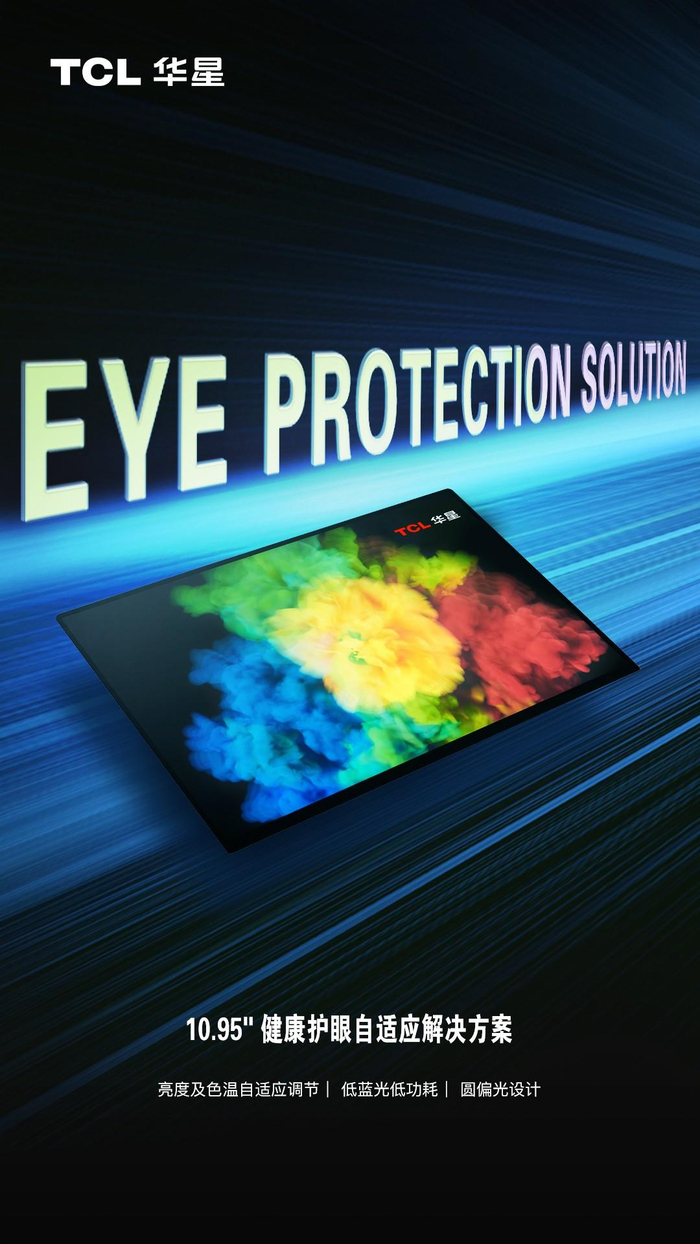 本次TCL华星推出的10.95" 健康护眼自适应解决方案对传统方案进行了优化创新,采用屏内集成环境光和色温传感器、防蓝光以及防眩光等技术,带来如自然光般的屏幕护眼体验,有效保护用户视力健康。
