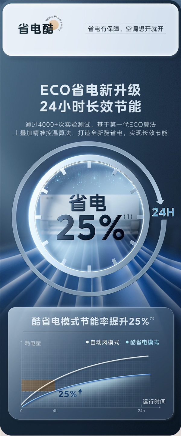 曾经美的空调的“一晚一度电”深深印刻在一代人的心中,如今美的空调再次升级打造省电黑科技,在原有8小时的ECO舒省模式基础上通过4000余次实验测试,叠加精准控温算法,实现ECO+的长效节能。酷省电空调可以在环境温度43℃以下,24小时全天候节能运行,至高省电25%,治愈消费者被“电费刺客”袭击的痛,称得上是“省电神机”。