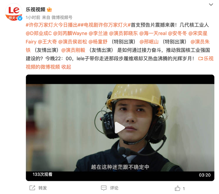 铸大国重器,挺民族脊梁! 又一部重磅新剧《许你万家灯火》3月1日乐视视频全网首播!
