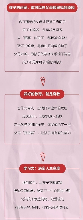 孩子都是很能活在当下的,情绪来去非常快,只有受到打压的时候,他们才会压抑情绪,为日后埋下隐患。最好的父母,就是知道自己正确的位置,做好自己,以身作则,给孩子树立榜样,而不是把过多的希望、未完成的梦想、没消化的情绪放在孩子身上。