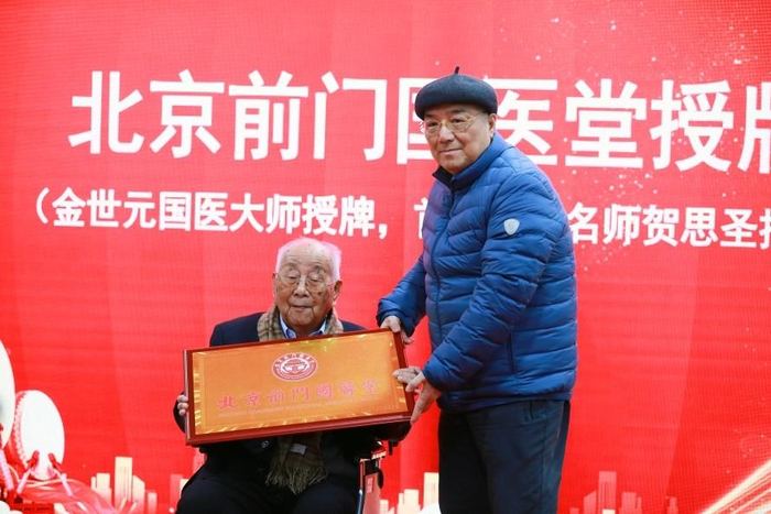 我国著名中医药学泰斗、97岁的国医大师金世元为“前门国医堂”授牌。
