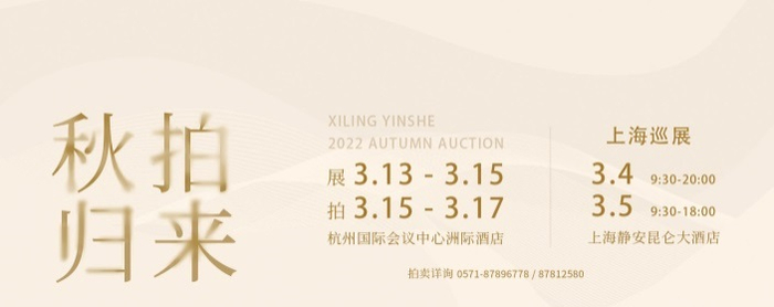 2023年3月4日至5日(周六、周日),2022西泠秋拍部分精品上海巡展将在静安昆仑大酒店(上海市静安区华山路250号)举行,精品荟萃,再度相约,诚邀各界藏家莅临展览现场,佳品共赏。巡展现场同步公开征集中国书画、古董珍玩等全门类藏品。