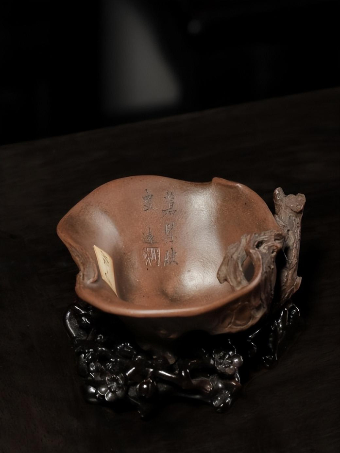 清早期·庞元济旧藏陈鸣远制紫泥苍髯腴叟松杯