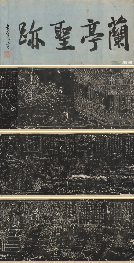 王羲之兰亭修禊,留下千古名篇,茧纸已入昭陵,自唐以来摹搨相尚,传本众多,诸如定武本、唐摹本、唐临本等。论及石刻留存,尤为繁杂。然集文、图、跋之大成者,非《兰亭图卷》莫属。据传有明周定王世子朱有炖《兰亭流觞图》、明益藩朱益鈏《兰亭流觞图》、清《乾隆御题补刻明端石兰亭图》。