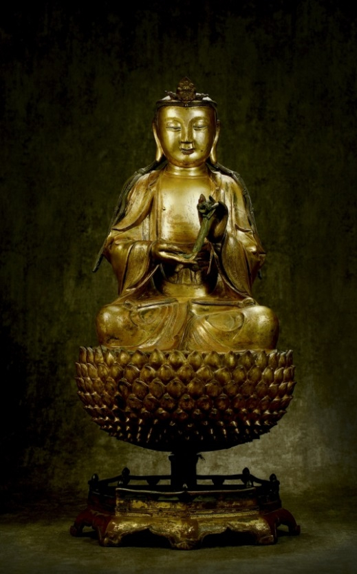 明•铜鎏金男相观音坐像