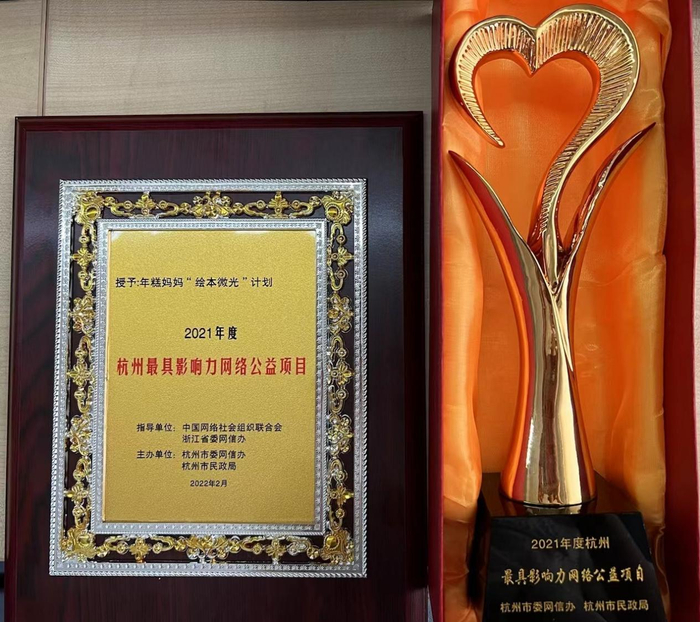 2022年2月,年糕妈妈“绘本微光”公益计划荣获2021年度杭州最具影响力网络公益项目。