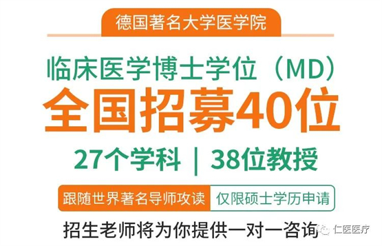 仁医医疗于2019年7月与德国著名大学医学院共同合作培养临床医学博士(MD)。2021年有十九位优秀临床医生成功通过面试,已于2022年前往德国开启临床医学博士(MD)留学之旅。