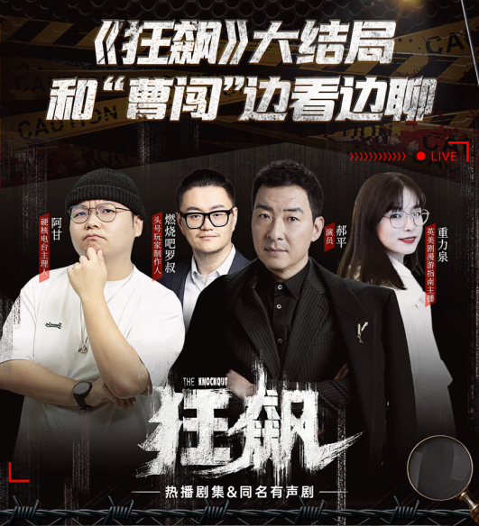 其中,《狂飙》同名有声剧在喜马拉雅“白夜剧场”同步热播。这部有声剧由演播名家纪涵邦等演绎,通过声音艺术进行横跨20年的群像叙事,全景式展现时代变迁下的黑白较量与复杂人性,该有声剧一上线即冲上喜马拉雅全站新品榜第一。在大结局播出当天,喜马拉雅特别邀请到《狂飙》主创演员郝平(刑警“曹闯”饰演者)空降直播间聊《狂飙》幕后故事,分析剧情,解读大结局。