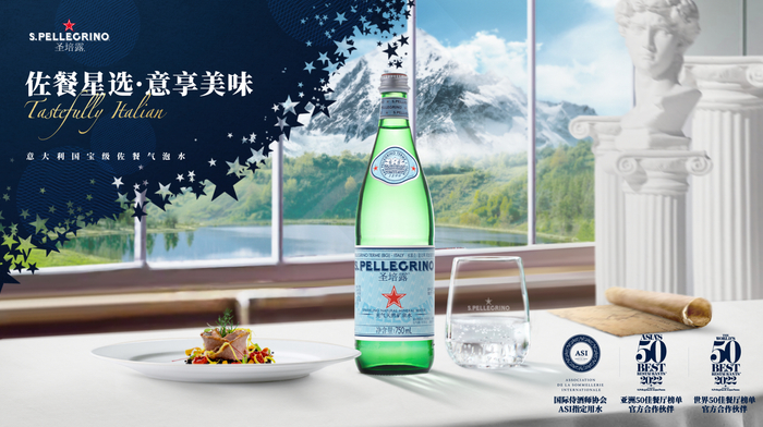 享誉全球的星级佐餐水圣培露(S.PELLEGRINO),自1899年创立以来,便致力于传递美食餐饮文化,引领精致优雅的意式生活风尚。长期以来,圣培露以其【丰沛的矿物芬芳】和【细腻绵密气泡】与美食交融,巧妙地保留食物的原始风味,提升味蕾体验,成为全球知名食府首选的【星级佐餐水】。