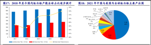 我国为全球钛白粉主要生产国,钛白粉产能占据全球半壁江山