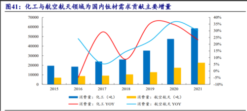 化工与航空航天行业蓬勃发展,为国内钛材需求贡献主要增量