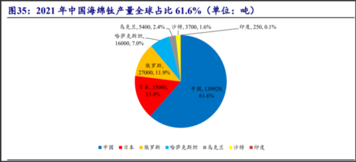 中国为全球海绵钛最大生产国,2021年产量占比约六成