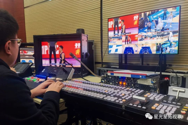 为完美再现紧张刺激的现场,星拓体育转播团队作出了精准的策略。在声音制作上,对于赛场采用指向性话筒布点,机头话筒,篮网微型话筒等收声方式,满足赛事期间赛场声音的收集与制作,观众席上采用指向性话筒来进行现场氛围声音收集。通话系统方面,提供保障摄像、导播、技术裁判席、现场解说等沟通的有线通话链路。在电源保障方面,星拓视联技术团队基于场馆单路电源基础上,对整个直播电源系统进行升级,接入两路不同的市电,使用UPS并能够进行前端市电倒换,保障直播系统用电安全。