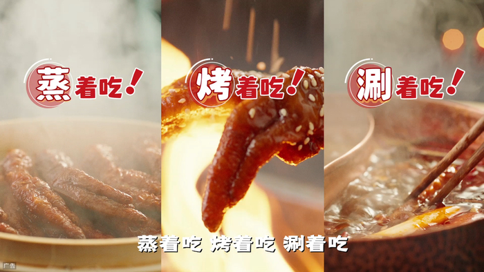 电视剧《沉香如屑》中,王小卤就曾以Mini小剧场的形式传达“追剧就吃王小卤”的理念。在《星落凝成糖》的投放中,王小卤再次以角色为载体,通过建立角色和产品的关联,放大其在大剧营销中的心智渗透。邀请嘲风扮演者陈牧驰和青葵扮演者何宣林共同演绎大剧中插小剧场,以角色之名为观众分享虎皮凤爪的花式吃法,在观众沉浸剧情疯狂上头嗑“青风徐来”CP的同时,强势安利“人间美食榜鼎鼎有名”的虎皮凤爪。