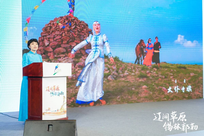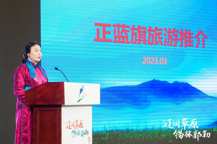锡林郭勒盟文体旅游广电局副局长阿拉腾娜布其在致辞中表示,一场推介会架起了两地的旅游合作桥梁,促进两地文化旅游交流合作。近年来锡林郭勒盟以优质草原为底色,以历史文化为支撑,以民俗风情为依托,隆重推出了锡林郭勒千里草原风景大道,致力于打造草原旅游新坐标。锡林郭勒盟文旅资源丰富,营商环境持续优化,2023年计划实施文体旅游重点项目25个,计划投资13.22亿元,拟招商项目20个,计划引资额10亿元。诚邀广大成都旅游企业和游客,来锡林郭勒喝一顿锡林郭勒早茶,听一曲蒙古长调和呼麦,住一晚蒙古包,骑一次蒙古马,看一次那达慕,拍一组民族服饰旅拍照,乐享草原的辽阔,放飞自由的心灵。