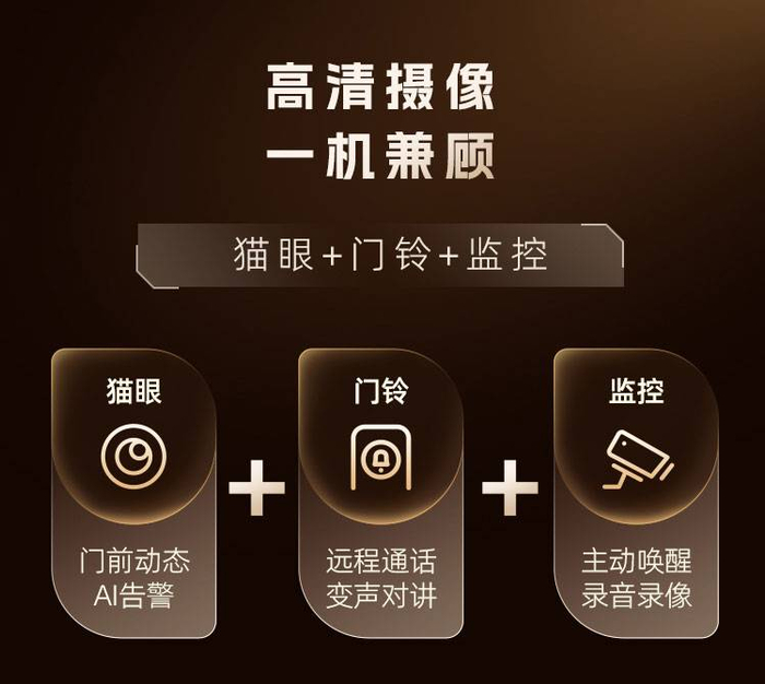 通过自带的高清摄像头,结合乐橙云能力,ROCK1-vp实现了猫眼门铃监控三合一,访客点击门铃后,房主即可在乐橙APP收到通知,随时进行远程视频通话与一键远程解锁;在没有收到呼叫时,通过乐橙APP也可以主动唤醒摄像头,查看门外情况,并可选择进行录音录像。